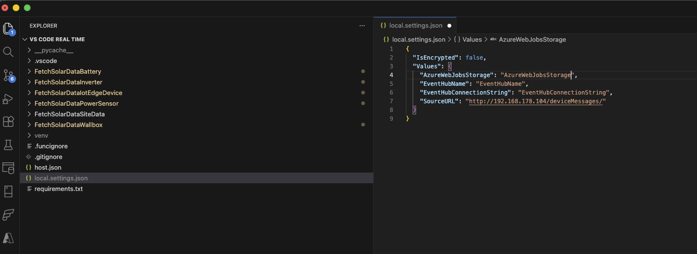 Dafür müssen der Event Hub Name sowie der Endpoint in der Function entsprechend konfiguriert werden (siehe Screenshot).Wichtig: Nach der Anpassung der Konfiguration müssen die Local Settings in die Azure Function hochgeladen werden.