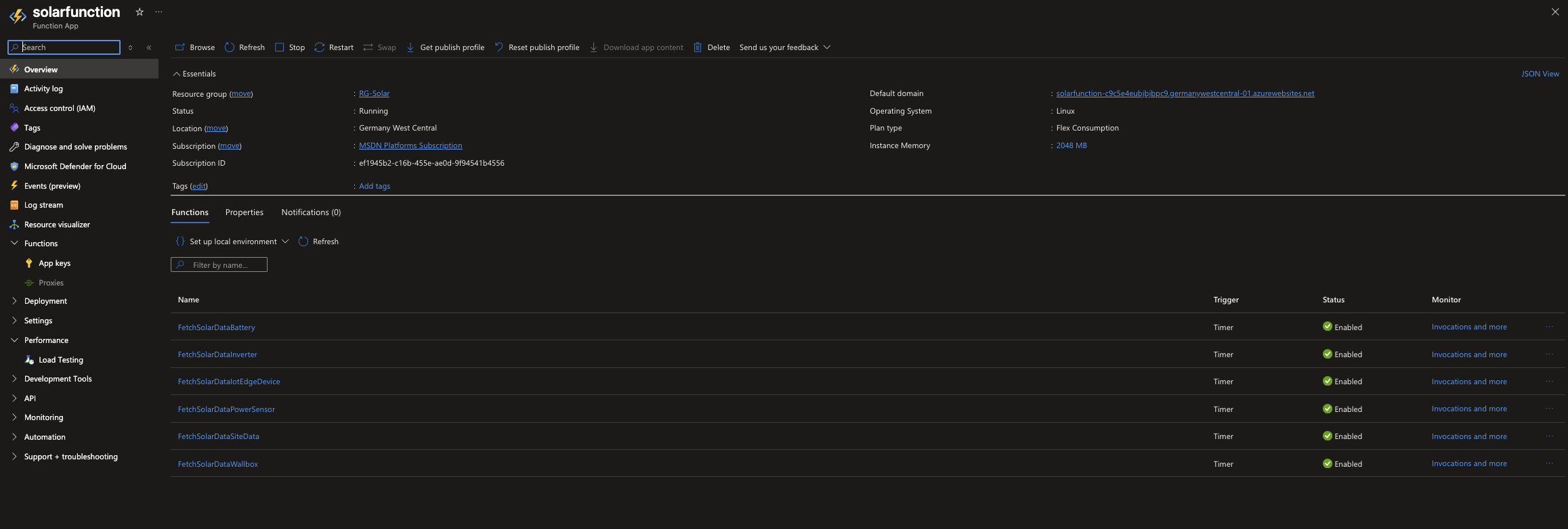 Die einzelnen Functions rufen die Daten jede Minute ab. Dieses Intervall kann pro Function in der Datei functions.json angepasst werden. Auch hierzu habe ich einen Screenshot ergänzt.