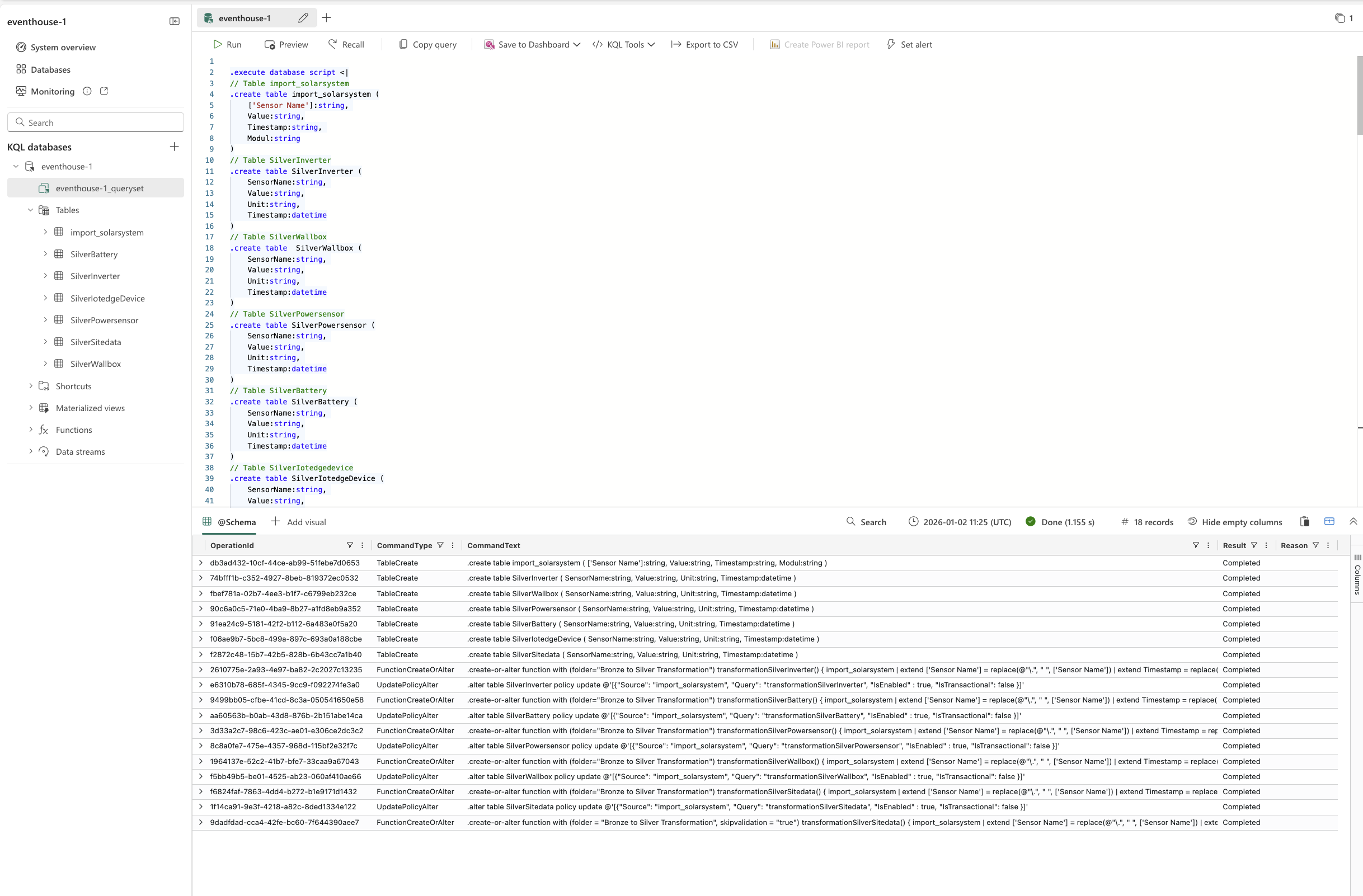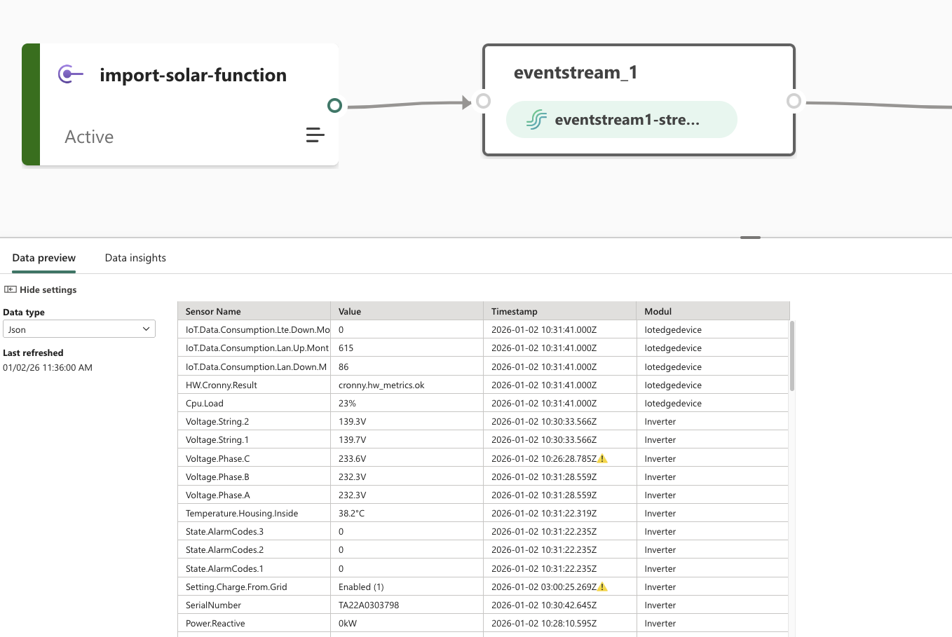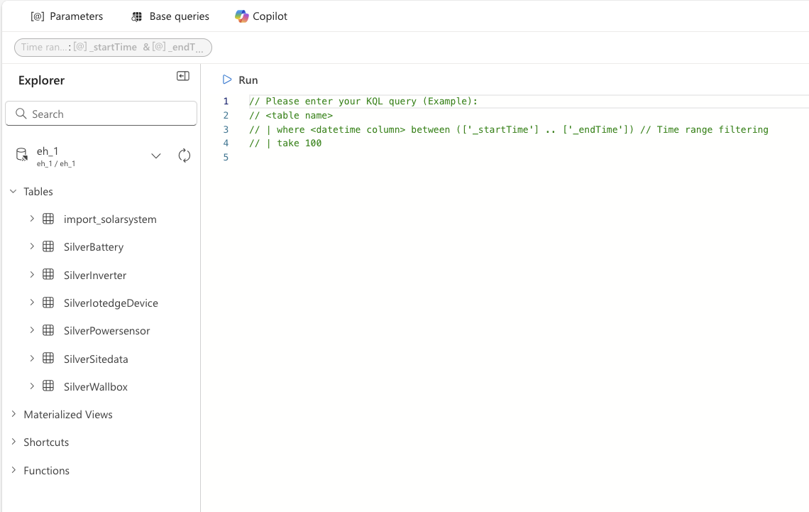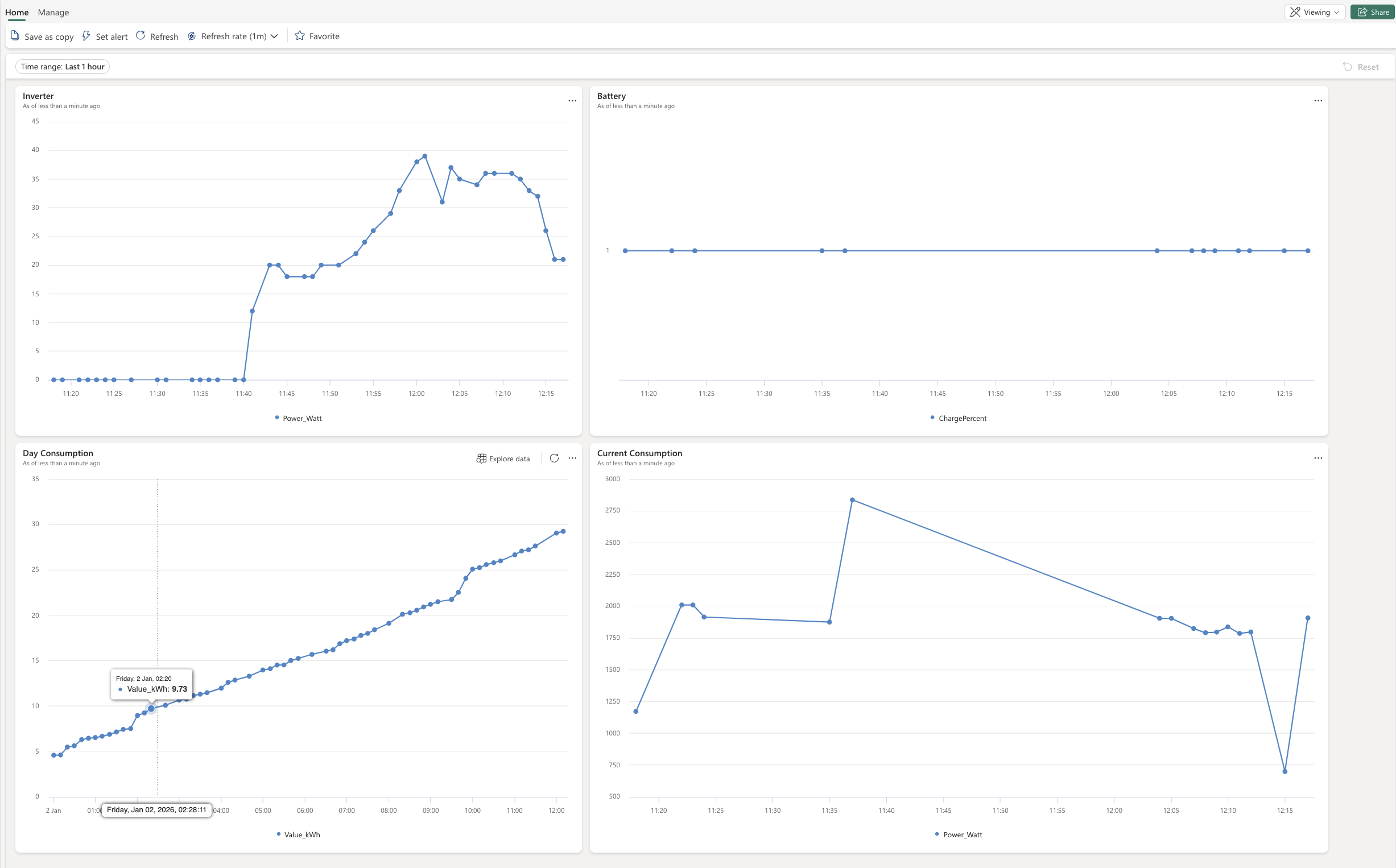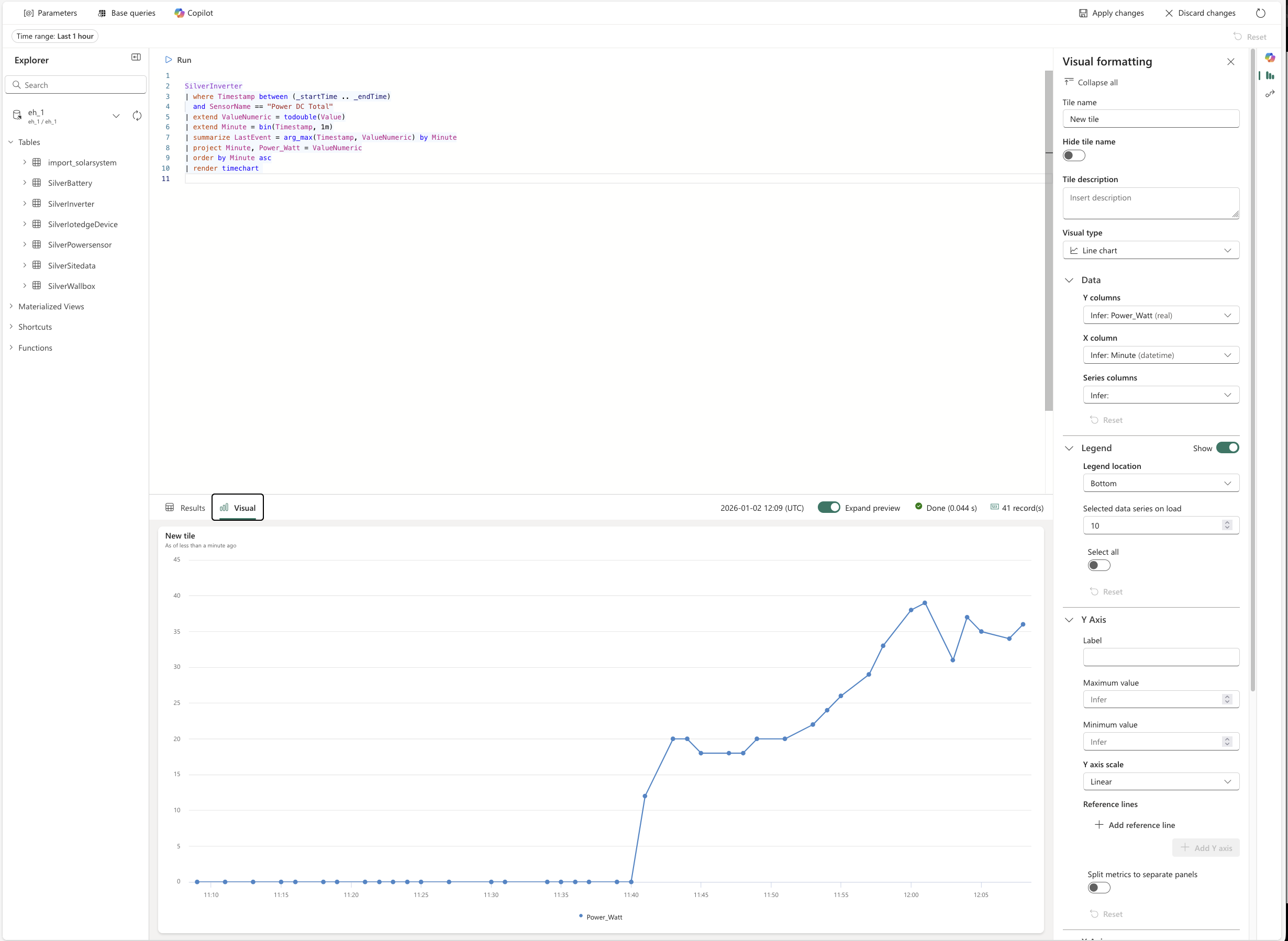 Wenn bis hierhin alles erfolgreich funktioniert hat, werden die Daten der Photovoltaikanlage im Eventhouse gespeichert. Im nächsten Schritt können wir ein Real-Time-Dashboard erstellen, um diese Daten zu visualisieren.
