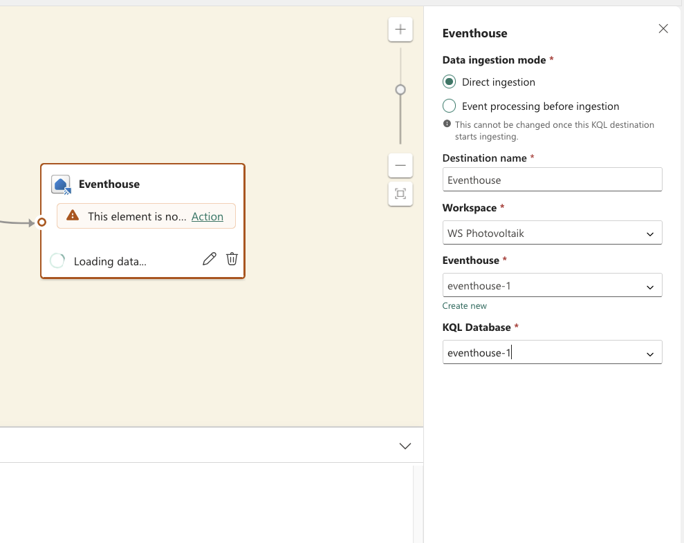 Damit die nächsten Schritte durchgeführt werden können, muss der Eventstream erneut veröffentlicht werden. Erst danach ist es möglich, die Zieltabelle auszuwählen.