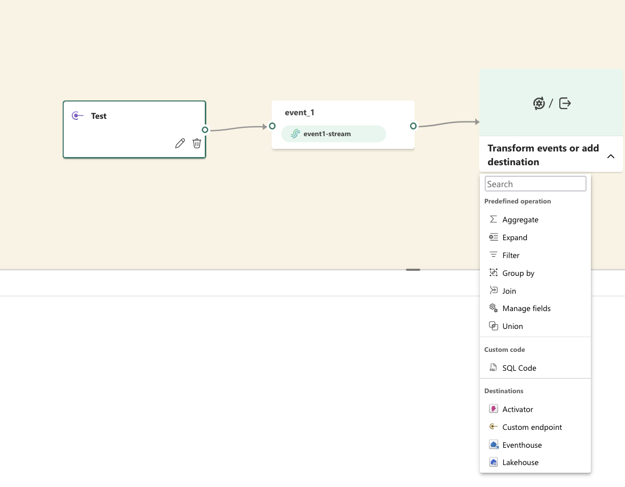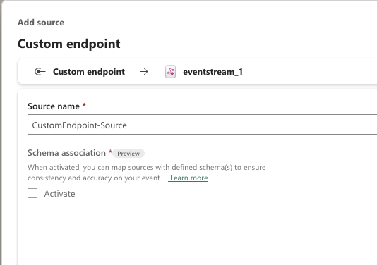 Als Ingestionsart habe ich Direct ingestion ausgewählt. Die Transformationen führe ich bewusst nicht im Eventstream, sondern über Functions im Queryset aus.