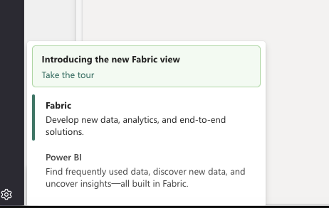 Unter app.powerbi.com sollten wir dann später in den Bereich Fabric wechseln. Der Menüpunkt befindet sich unten links. Siehe auch Screenshot „Fabric Portal“